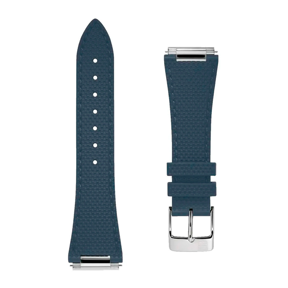 Ремешок: Браслет с литыми звеньями из нержавеющей стали, пружинная система быстрой замены ремешка/браслета, браслетная застежка тройного сложения “бабочка” раскладывается при нажатии на кнопки двойной фиксации. В комплекте идет каучуковый ремешок синего цвета с тиснением.