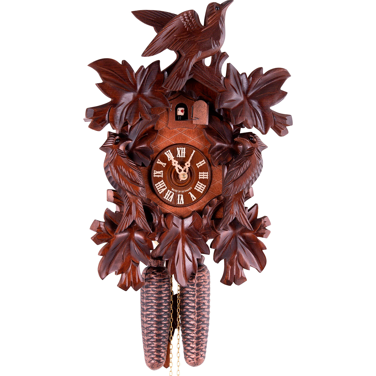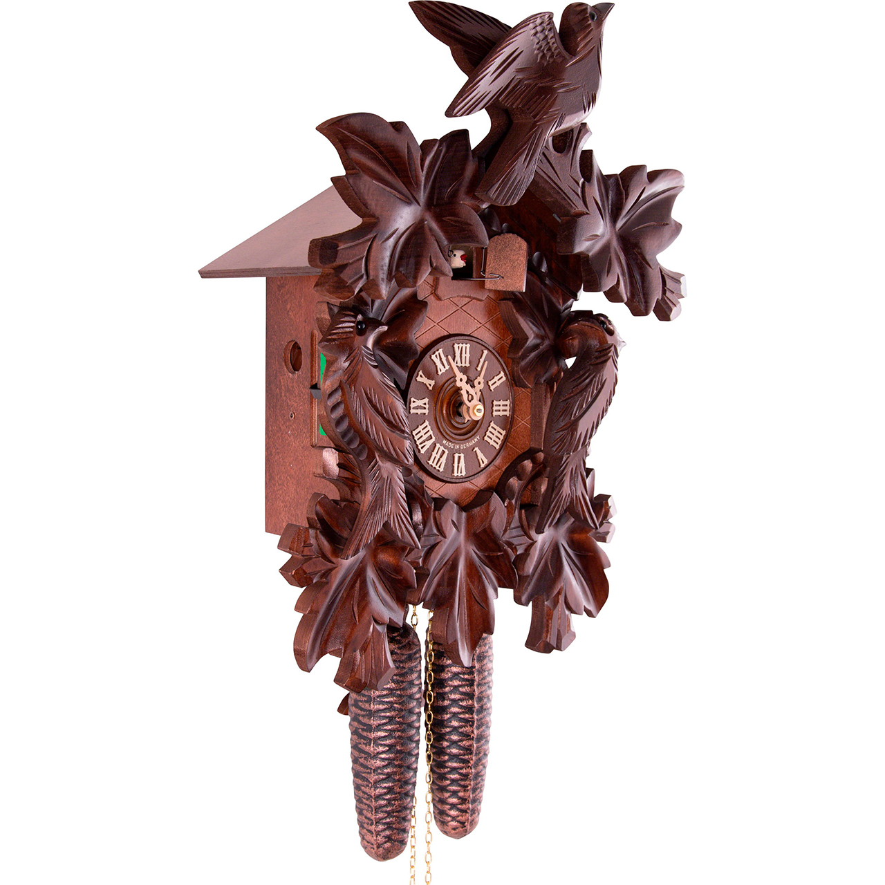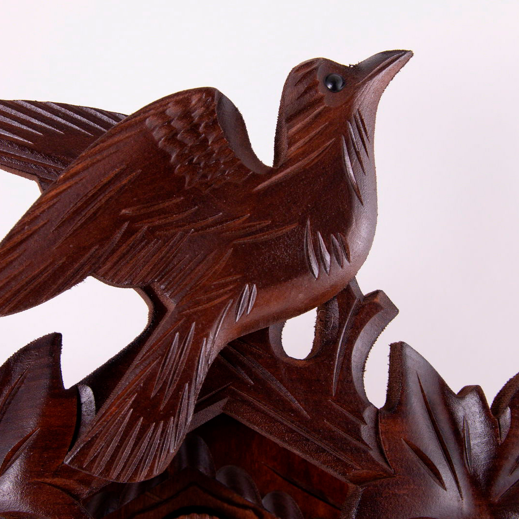 Механизм: Механические часы с кукушкой, которые работают от гирь на цепной тяге. Сделан на фирме SBS-Feintechnik GmbH & Co. KG Германия. Запас хода на 8 дней. Ручное отключение звука. В каждые пол часа кукушка появляется из своего домика, наклоняется и воспроизводит звук кукушки (ку-ку) один раз, в каждый полный час она кукует столько раз сколько показывают стрелки на часах. Одна гиря в данных часах отвечает за ход часового механизма, а вторая за механизм кукушки.