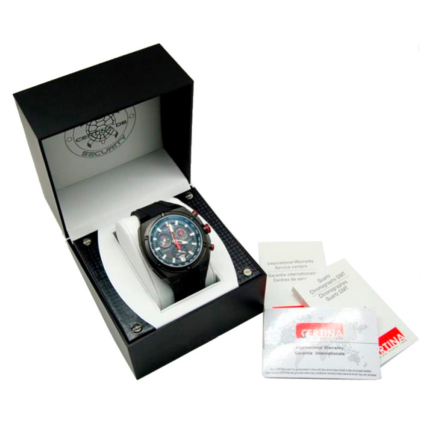 Функции: Индикация часов, минут при помощи центральных стрелок. Хронограф с 60-ти секундным, 12-ти часовым счетчиками, индикация 2-го часового пояса на "10" часов, индикация даты и вынесенная секундная стрелка на "6" часов.