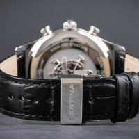 Функции: Индикация часов, минут при помощи центральных стрелок. Хронограф с 12-ти часовым, 60-ти секундным и 30-ти минутным счетчиками, индикация фазы луны и лунного цикла, индикация даты на "4" часа, вынесенная секундная стрелка на "6" часов.
