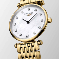 Корпус: Нержавеющая сталь + PVD-покрытие из желтого золота, сапфировое стекло, 12 бриллиантов на циферблате. Размер 24 мм,  водонепроницаемость 30 метров. Циферблат – перламутровый белый.