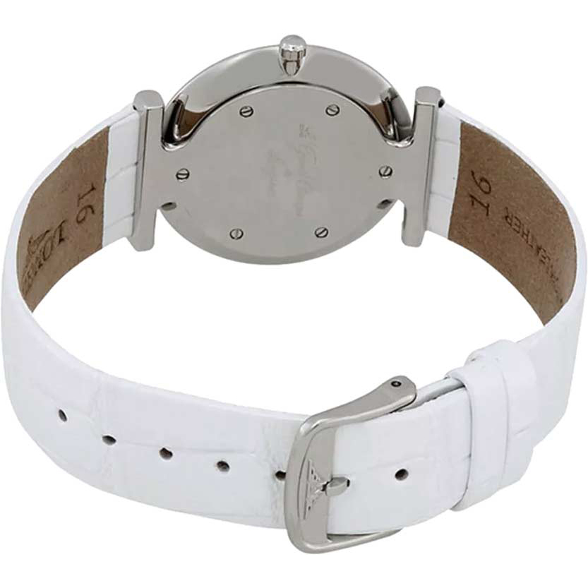 Корпус: Нержавеющая сталь, сапфировое стекло. Диаметр 24 мм, водонепроницаемость 30 метров. Циферблат – белый перламутровый.