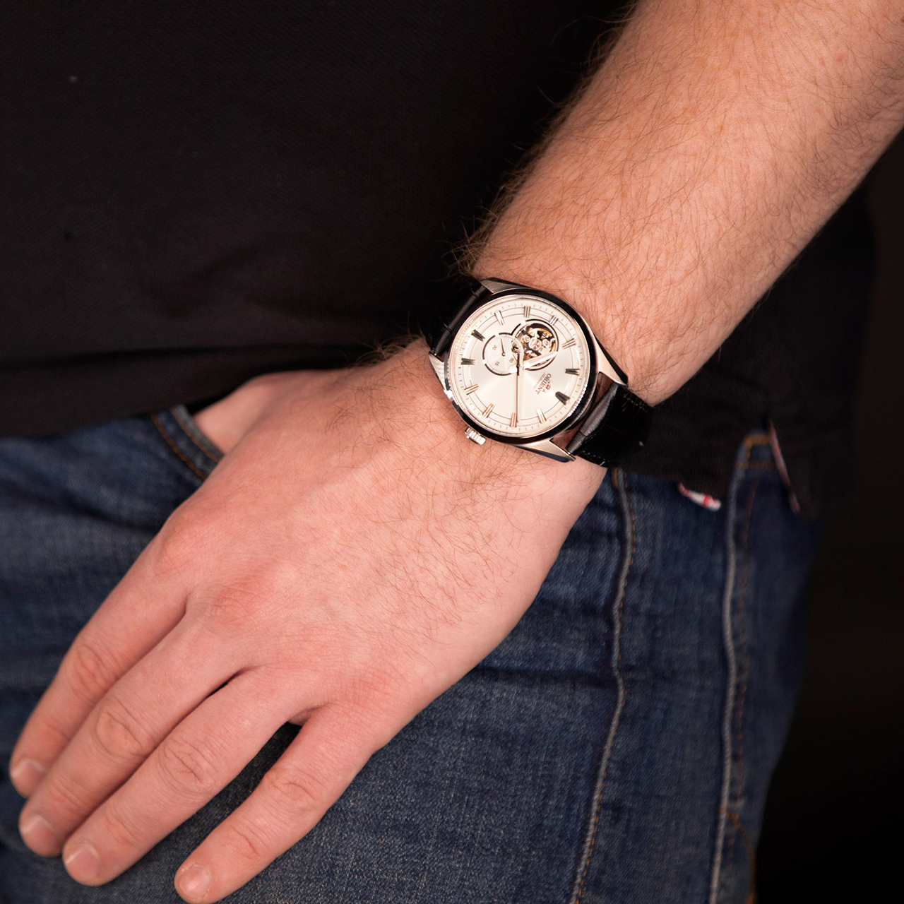 Корпус: Корпус из высококачественного стального сплава 316L с высокими антикоррозийными свойствами. Синий циферблат с часовыми индексами в виде штрихов и римских цифр. Устойчивое к мелким механическим повреждениям минеральное стекло. Прозрачная завинчивающаяся задняя крышка. Диаметр корпуса 42 мм, толщина 12 мм. Водостойкость WR 50.