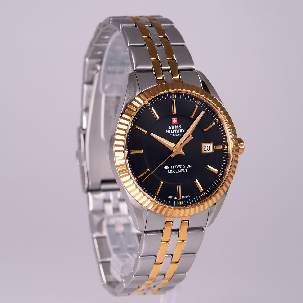 Корпус: Корпус выполнен из нержавеющей стали с частичным PVD покрытием цвета желтого золота. Чёрный циферблат. Минеральное стекло с сапфировым покрытием. Водонепроницаемость 50 метров. Диаметр 40 мм.