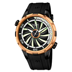 Швейцарская компания «Perrelet» на протяжении последних нескольких лет привлекает к себе внимание моделями часов с использованием технологии «Turbine».* Эта технология имеет два ротора, один из которых расположен на циферблате и своим непредсказуемым направлением быстрого вращения создаёт оригинальный визуально-эстетический эффект. Все часы с декоративным аэродинамическим решением «Turbine» входят в одноимённую коллекцию, которая в настоящее время настолько велика и разнообразна, что, в свою очередь, подразделяется на несколько «семейств» или линий. Две из этих линий – «Yacht» & «Diver» специально созданы для любителей и поклонников яхтенного спорта, а также для опытных и начинающих исследователей океанических и морских глубин. Часы «Yacht» & «Diver» пользуются невероятной популярностью, которая стимулирует специалистов Perrelet достаточно часто осуществлять дизайнерские и технические обновления моделей указанных линий.