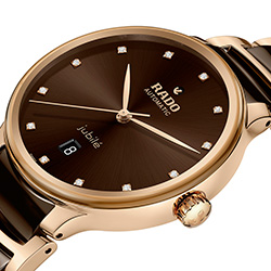 Логотип Rado в новой линейке Centrix больше, чем раньше, а надпись Jubilé возвращается на модели, в индексах которых присутствуют драгоценные камни. В маркировку крепления заводной головки была добавлена улучшенная лазером детализация, чтобы сделать ее более заметной. Вертикальные грани корпуса больше не имеют простой цилиндрической формы, а красиво закруглены, чтобы соответствовать более мягкому дизайну и плавно переходить в переработанную заднюю крышку корпуса с новой геометрией и меньшим количеством маркировок, а также выгравированным лазером серийным номером.