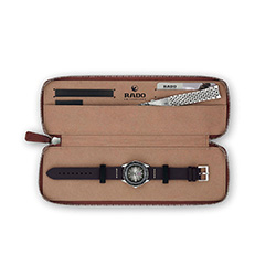 Лимитированная серия часов Captain Cook Over-Pole представлена в стильном кожаном кейсе из коричневой кожи. В набор также входит браслет из нержавеющей стали с узором «рисовое зерно», который легко заменить при помощи системы EasyClip для создания нового образа.
