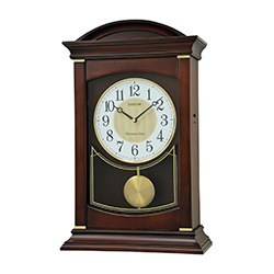 • Цвет: Цвет корпуса темный орех. Стекло в красивую тонкую полоску дополняет качающийся маятник и декоративную отделку уголков золотистого цвета.