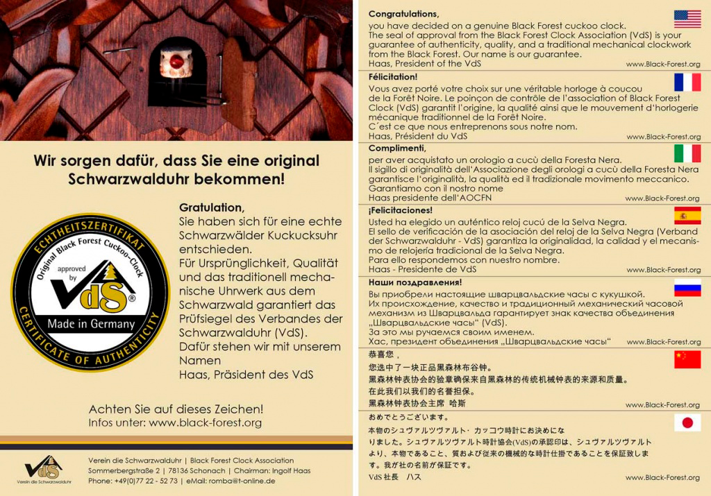 Интересно, что Hekas - одна из немногих часовых мастерских, предлагающих полный ассортимент часов из Шварцвальда. Это означает, что они могут производить часы с кукушкой в сувенирном стиле, а также престижные немецкие часы с кукушкой. Большинство уникальных часов с кукушкой имеют сертификат VdS; Это означает, что они соответствуют высоким стандартам качества Ассоциации часов Шварцвальда .
