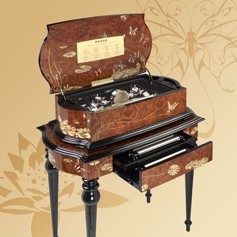 История музыкальных шкатулок началась в конце XVII века в Швейцарии. В 1796 году часовой мастер Антуан Фавр изобрел первый механизм, воспроизводящий мелодию. На протяжении последующего столетия музыкальные шкатулки пользовались большим спросом. Но ряд неблагоприятных факторов – появление фонографа, Мировая война и кризис 1929 года – свел их производство на нет.
