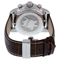 Функции: Индикация часов, минут при помощи центральных стрелок. Окошко даты на "6 часов". Хронограф. Счётчик 12 -ти часов расположен в положении " 10 часов", 30-минутный счётчик на " 2 часа", малая секундная стрелка на "6 часов".
