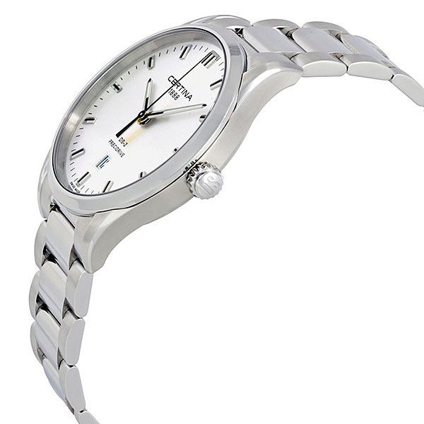 Корпус: Корпус модели выполнен из высококачественной стали марки 316L с повышенной устойчивостью к коррозии, поверхности с матовой шлифовкой – сатинированием и полировкой до зеркального блеска. Серебристый циферблат выполнен по технологии Sunray (солнечные лучи). Метки в виде штрихов. Метки и стрелки с люминесцентным покрытием, которое светится в темноте после непродолжительной зарядки на свету. Сапфировое стекло. Диаметр: 40 мм. Водостойкость: 100 м.