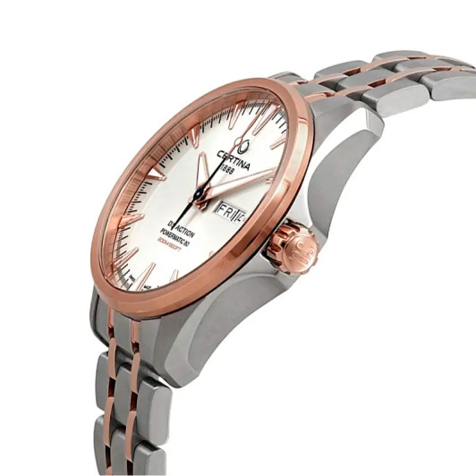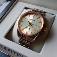 Корпус: Корпус из нержавеющей стали, безель - PVD-покрытие цвета розового золота. Сапфировое стекло с антибликовым покрытием. Светлый циферблат. Диаметр 41 мм. Водонепроницаемость 200 метров.