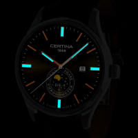 Корпус: Корпус из нержавеющей стали. Коричневый циферблат, золотистые стрелки и часовые индексы с люминесцентным покрытием. Сапфировое стекло с антибликовым покрытием. Диаметр 41 мм. Водостойкость 100 м.