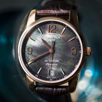 Корпус: Корпус из полированной/матовой нержавеющей стали с PVD - покрытием золотом. Перламутровый циферблат с золотистыми стрелками и часовыми индексами. Сапфировое стекло. Диаметр 33 мм. Водостойкость 100 м. Система DS.