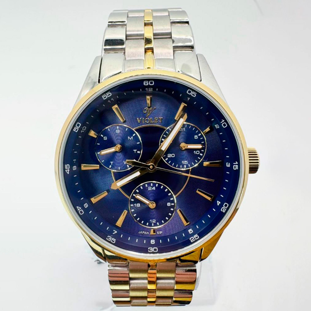 Корпус: Корпус выполнен из высококачественной стали с повышенной устойчивостью к коррозии, поверхность с полировкой до зеркального блеска и частичным IP -покрытием. Синий циферблат. Накладные часовые индексы и стрелки выполнены из стали с позолотой. На стрелках покрытие SuperLuminova, которое обеспечивает подсветку в темное время суток. Прочное минеральное стекло обеспечит защиту часов от повреждений. Диаметр корпуса составляет: 34 мм. Водостойкость: WR 50 (мытье рук, дождь).