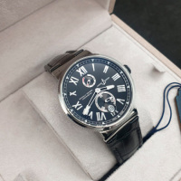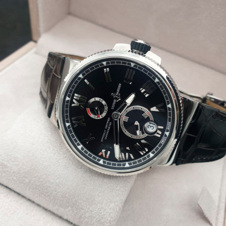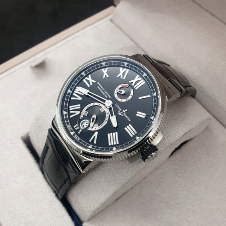 Корпус: Нержавеющая сталь, сапфировое стекло, диаметр 45 мм, водонепроницаемость 200 метров. Циферблат черный.