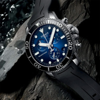 Корпус: Корпус из нержавеющей стали 316L. Рифленый алюминиевый вращающийся в одном направлении чёрный безель с минутной шкалой. Циферблат синего цвета. Метки и стрелки с люминесцентным покрытием SuperLuminova, которое светится в темноте. Сапфировое стекло с двусторонним антибликовым покрытием, устойчивое к появлению царапин. Рифленая заводная головка. Завинчивающиеся заводная головка и задняя крышка корпуса. Диаметр 45 мм. Водостойкость 300 м.