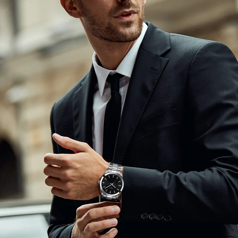 Корпус: Корпус выполнен из стали 316L с повышенной устойчивостью к коррозии, поверхность с матовой шлифовкой – сатинированием и полировкой до зеркального блеска. Циферблат чёрного цвета выполнен по технологии Sunray (солнечные лучи). Стрелки и накладные часовые индексы в виде штрихов выполнены из стали. Стрелки с люминесцентным покрытием SuperLuminova, которое светится в темноте после непродолжительной зарядки на свету. Сапфировое стекло с антибликовым покрытием. Рифленая заводная головка. Диаметр корпуса: 40 мм. Водозащита: 100 метров.