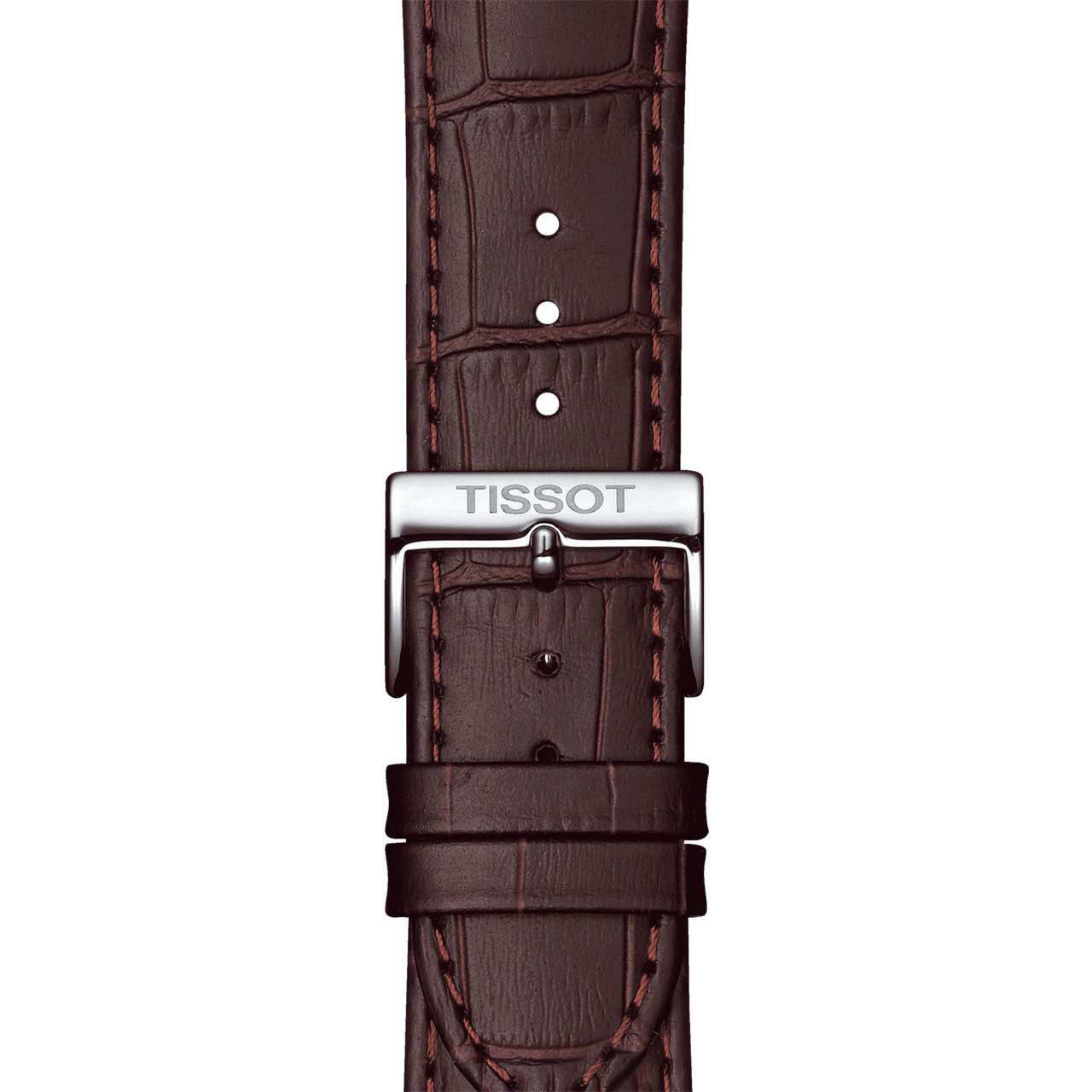 Ремешок: Коричневый ремешок из телячьей кожи с тиснением под аллигатора с классической застежкой.