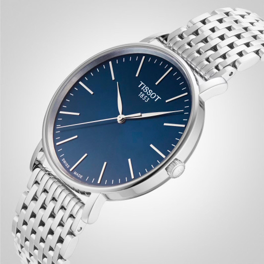 Корпус: Высококачественная нержавеющая сталь с повышенной устойчивостью к коррозии, поверхности с полировкой до зеркального блеска. Синий циферблат выполнен по технологии Sunray (солнечные лучи). Накладные метки в виде штрихов. Узкие листовидные стрелки в стиле Feuille. Сапфировое стекло с антибликовым покрытием устойчивое к возникновению царапин. Рифленая заводная головка. Размер корпуса составляет: D 40 мм, толщина 7,1 мм, ширина браслета 20 мм. Водостойкость: WR 50.