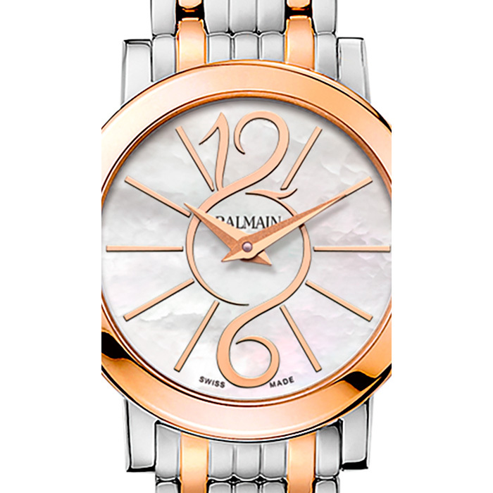 Корпус: Нержавеющая сталь с PVD-покрытием из розового золота. Серебристый циферблат. Сапфировое стекло защищает циферблат с фирменным узором арабески. Диаметр 29 мм. Водостойкость 50 м.