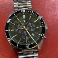 Корпус: Круглый корпус из нержавеющей стали 316L с безелем чёрного цвета и частичным PVD покрытием. Циферблат зелёного цвета выполнен по технологии Sunray (солнечные лучи). Метки в виде штрихов. Сапфировое стекло устойчивое к появлению царапин. Рифленая заводная головка с защитой. Диаметр корпуса 44 мм. Водонепроницаемость 100 метров.