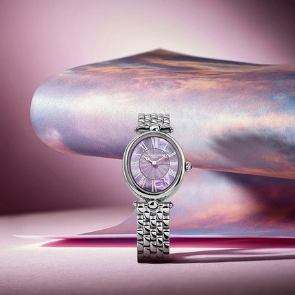 Корпус: Корпус овальной формы из 3 частей выполнен из нержавеющей стали марки 316L, поверхности с финишной полировкой. Циферблат из перламутра с гильошированием в стиле “капли воды”. Печать римских цифр в винтажном стиле и фигурные стрелки с покрытием цвета родия отполированные вручную. Сапфировое стекло выпуклой формы имеет повышенную устойчивость к возникновению царапин. Боковая поверхность имеет насечку в стиле “ребро монеты”. Переводная коронка украшена кабошоном. Задняя крышка соединяется с корпусом при помощи 4 винтов. Ширина корпуса модели составляет 25 мм, высота - 30 мм, толщина – 6,8 мм. Водостойкость 30 метров (3 АТМ).