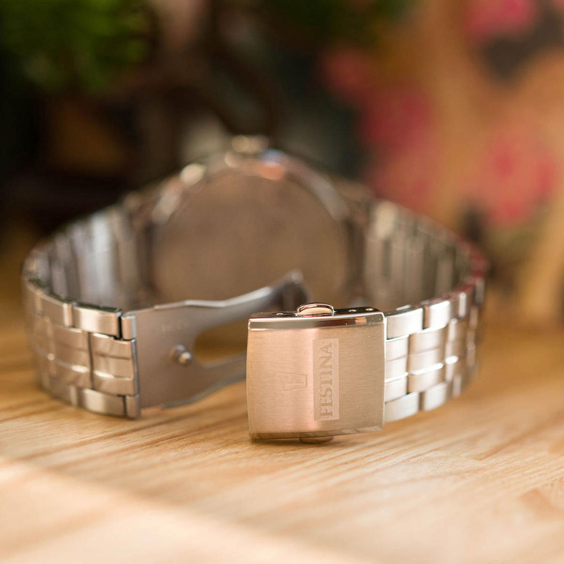 Ремешок: Надежный стальной браслет с раскладывающейся застежкой.