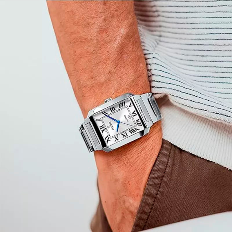 Корпус: Ударопрочный корпус часов сделан из нержавеющей стали. Светлый циферблат, часовые индексы в виде римских цифр. Минеральное стекло устойчивое к возникновению царапин. Рифленая заводная головка. Размер корпусар ширина 32 мм, высота 36 мм, глубина 9 мм. Водонепроницаемость 50 м.