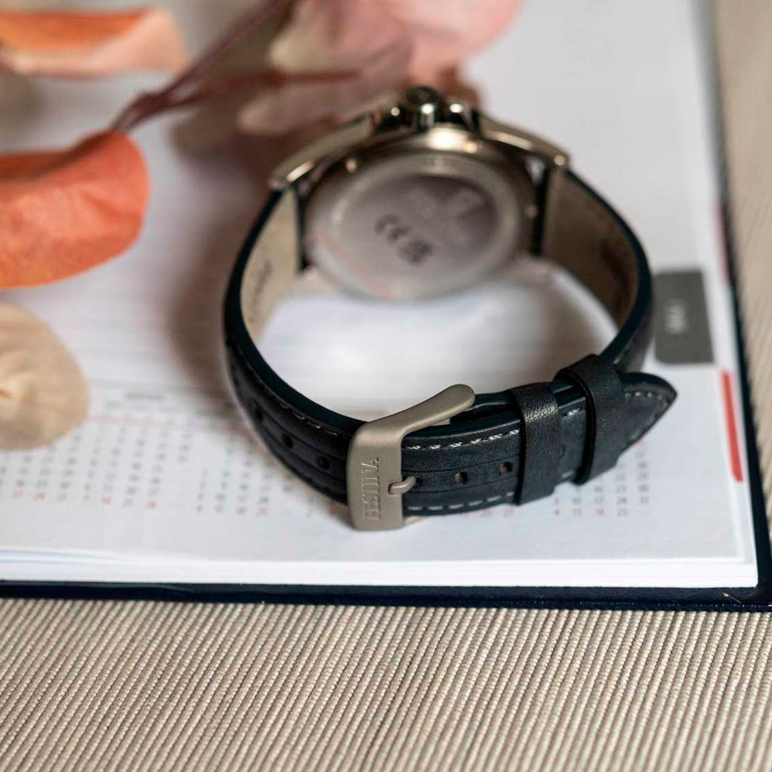 Ремешок: Перфорированный ремешок из натуральной кожи с классической застежкой.