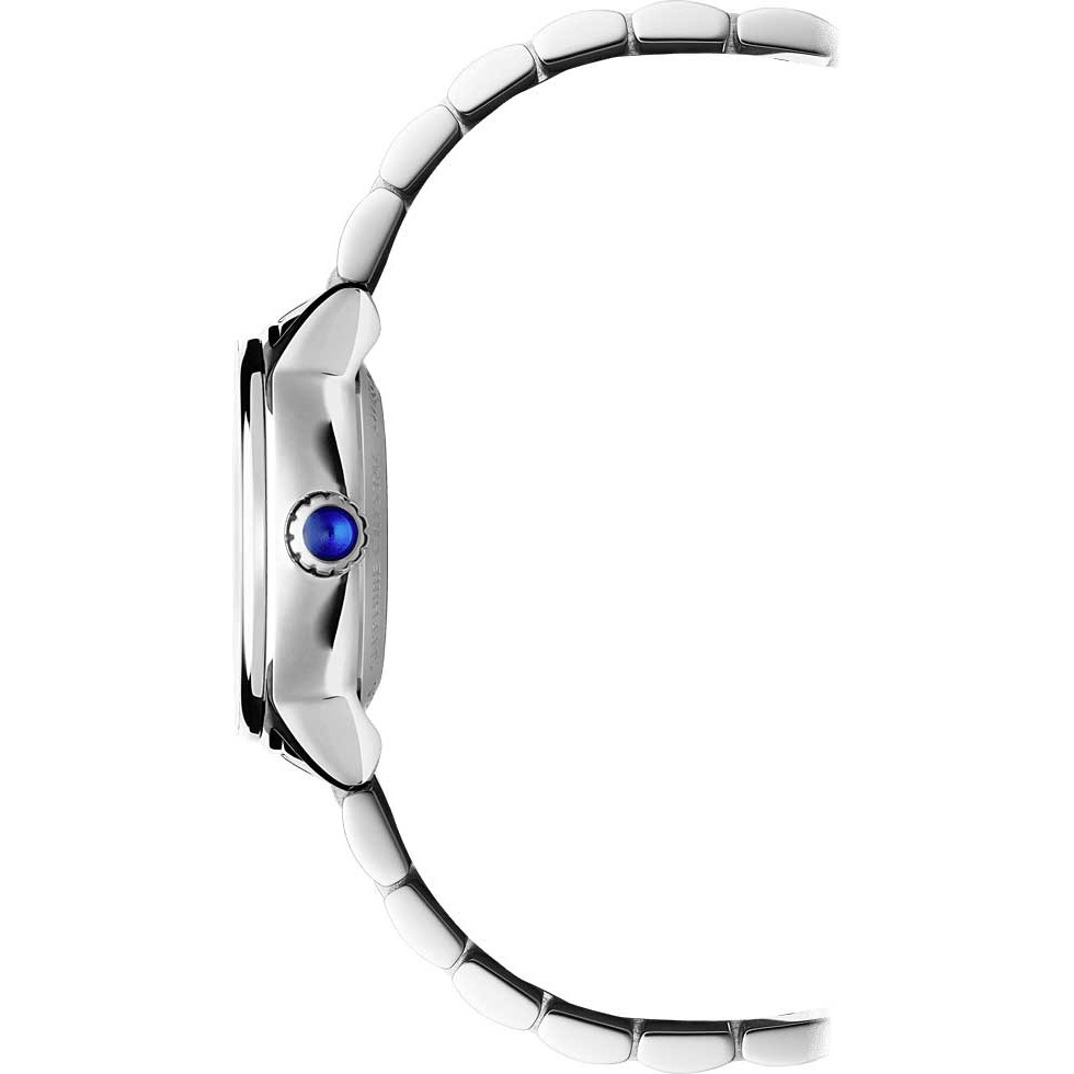 Корпус: Корпус круглой формы выполнен из нержавеющей стали марки 316L, поверхности с матовой шлифовкой и глянцевой полировкой. Циферблат из натурального перламутра. Аппликация римских цифр с покрытием цвета родия и стрелки с синей лакировкой. Инкрустация 6 бриллиантов 8/8 SI2 - SI1 весом 0,23 карата. Сапфировое стекло имеет повышенную устойчивость к возникновению царапин. Диаметр корпуса модели составляет 31 мм, толщина - 8,9 мм. Задняя крышка с прозрачным окном из сапфирового стекла. Водостойкость на глубине до 50 метров (5 бар/АТМ).