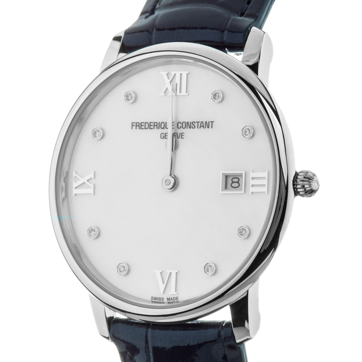 Корпус: Нержавеющая сталь. Циферблат белый перламутровый украшен бриллиантами. Сапфировое стекло. Диаметр 36 мм. Водонепроницаемость 30 метров.