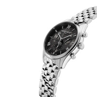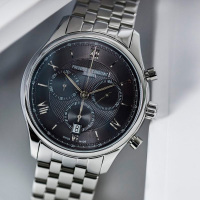 Корпус: Полированный корпус из нержавеющей стали, марка 316L. Гильошированный “Clou de Paris” черный циферблат под выпуклым сапфировым стеклом. Римские цифры и часовые индексы, выполненные методом аппликации, а также фигурные стрелки ”листок” с серебристым покрытием. Диаметр корпуса составляет 40 мм, толщина - 10.2 мм. Задняя крышка с гравировкой имеет резьбовое соединение с корпусом. Водостойкость 50 метров (5 АТМ).