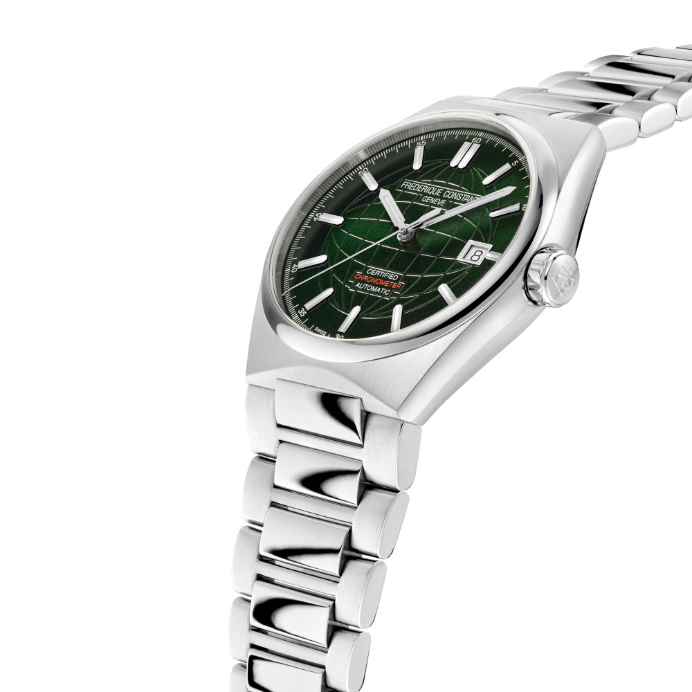 Механизм: Швейцарский механизм FC-303 с автоматическим подзаводом создан имеет запас хода 38 часов, частота колебаний баланса 28 800 пк/час (4Hz), 26 рубинов в качестве камневых опор колесной системы и палет анкерного спуска. Точность хода механизма часов линейки отрегулирована в соответствии с сертификатом C.O.S.C.