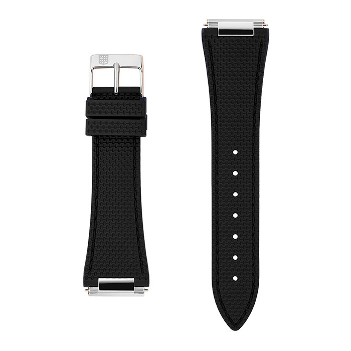 Ремешок: Браслет с литыми звеньями из нержавеющей стали, пружинная система быстрой замены ремешка/браслета, браслетная застежка тройного сложения “бабочка” раскладывается при нажатии на кнопки двойной фиксации. В комплекте идет каучуковый ремешок с тиснением.