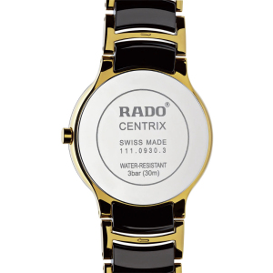 Корпус: Нержавеющая сталь с PVD покрытием. Циферблат чёрного цвета, золотистые стрелки и часовые индексы. Сапфировое стекло с антибликовым покрытием. Водозащита 30 м. Диаметр 28 мм.