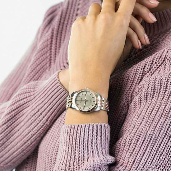 Ремешок: Браслет выполнен из нержавеющей стали с частичным розовым PVD покрытием. Браслетная раскладывающаяся застежка с гравировкой логотипа.