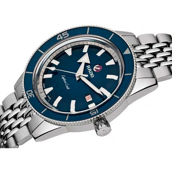 Корпус: Нержавеющая сталь 316L. Синий циферблат, стрелки и часовые индексы с крупными люминесцентными вставками. Антибликовое покрытие сапфирового стекла, вращающийся безель со вставкой из высокотехнологичной керамики синего цвета. Завинчивающаяся задняя крышка, закручивающаяся заводная головка. Водонепроницаемость 200 метров. Размер 42 мм.