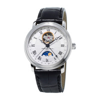 Корпус: Корпус выполнен из высококачественной нержавеющей стали с полировкой и матовой шлифовкой (сатинированием) поверхностей. Циферблат серебристого цвета с гильошированием в стиле "Clous de Paris", печатные римские цифры и фигурные стрелки черного цвета. Апертура в верхней части циферблата приоткрывает тайну работы часового механизма. Сапфировое стекло с повышенной устойчивостью к появлению царапин. Диаметр корпуса составляет 40 мм, толщина - 10 мм. Заводная коронка украшена логотипом марки. Задняя крышка с прозрачным окном имеет резьбовое соединение с корпусом. Водостойкость 6 АТМ.