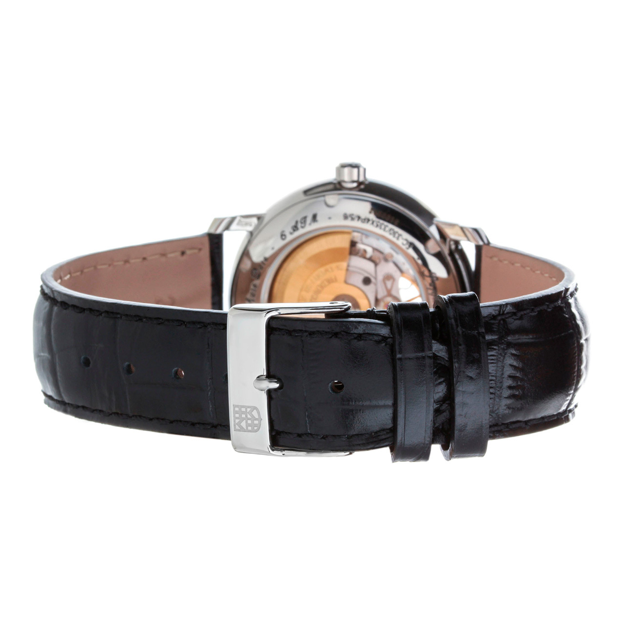 Ремешок: Ремешок черного цвета из высококачественной кожи с тиснением под аллигатора, ширина 22 мм, классическая застежка пряжка из нержавеющей стали.