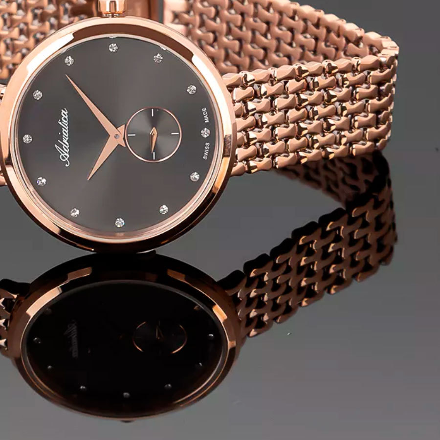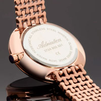 Ремешок: Браслет выполнен из нержавеющей стали с розовым PVD покрытием. Раскладывающаяся застежка с гравировкой логотипа.