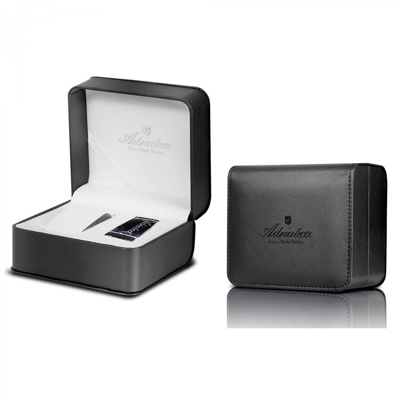 Корпус: Круглый корпус выполнен из полированной нержавеющей стали. Перламутровый белый циферблат украшен 12 фианитами. Минеральное стекло устойчивое к появлению царапин, обладает высокой прозрачностью. Диаметр корпуса составляет 34 мм, толщина 7 мм. Водостойкость WR 30 (мытье рук, дождь).