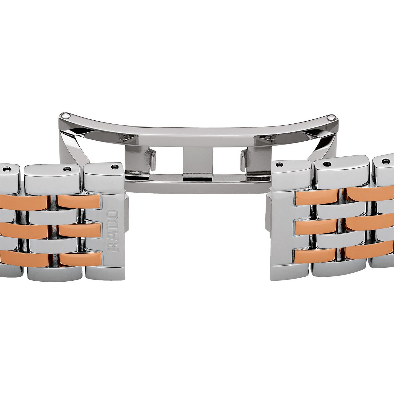 Ремешок: Нержавеющая сталь с частичным PVD-покрытием розового золота, застежка бабочка.