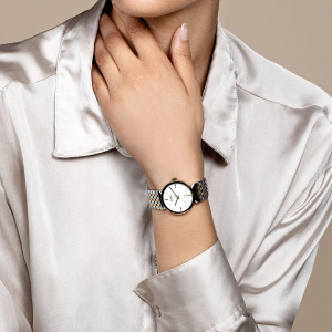 Ремешок: Браслет из нержавеющей стали 316L с повышенной устойчивостью к коррозии, с частичным PVD-покрытием цвета жёлтого золота, поверхности с матовой шлифовкой – сатинированием и полировкой до зеркального блеска. Раскладывающаяся застежка.