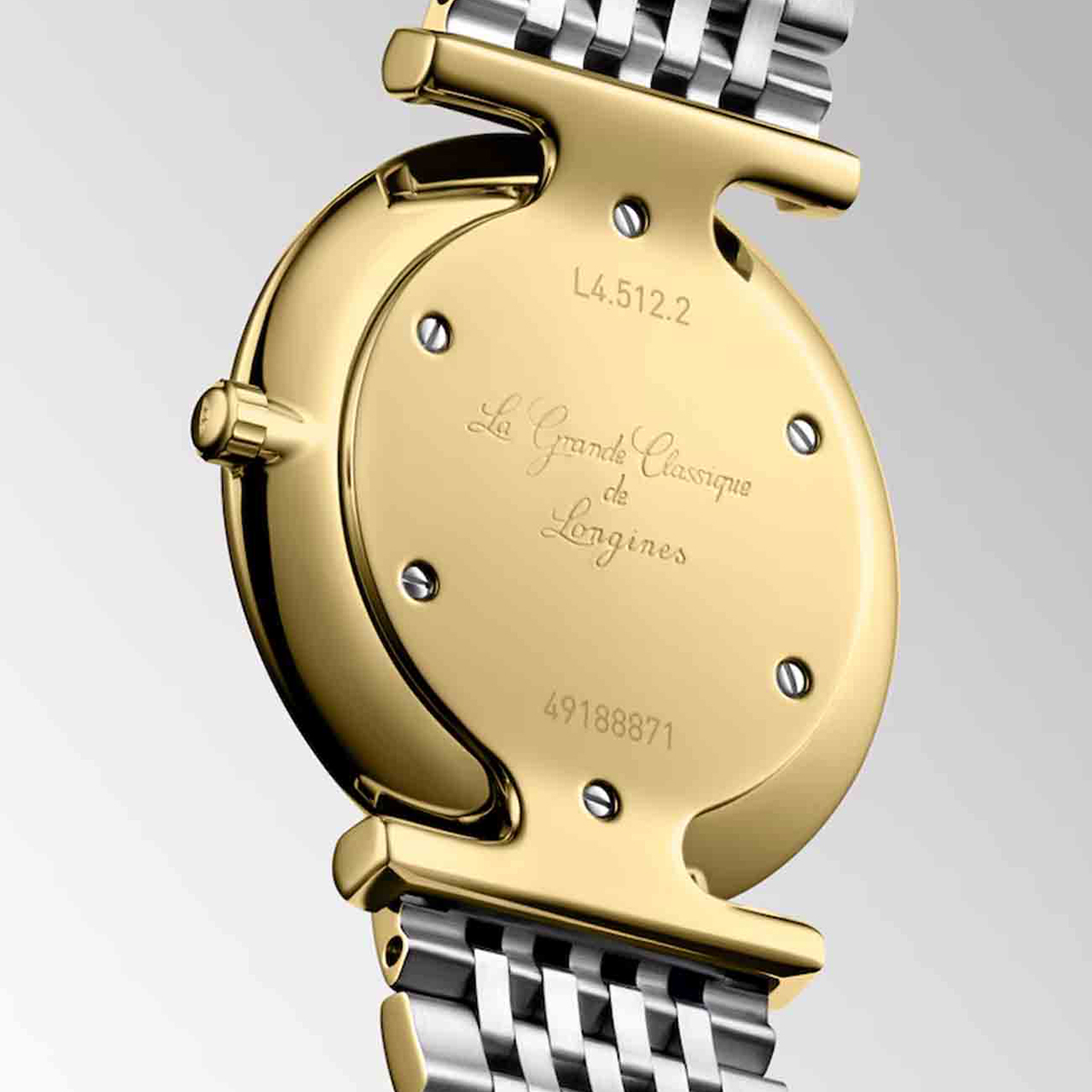 Корпус: Нержавеющая сталь + PVD-покрытие из желтого золота, сапфировое стекло, 12 бриллиантов на циферблате. Размер 29 мм, водонепроницаемость 30 метров. Циферблат – перламутровый белый.