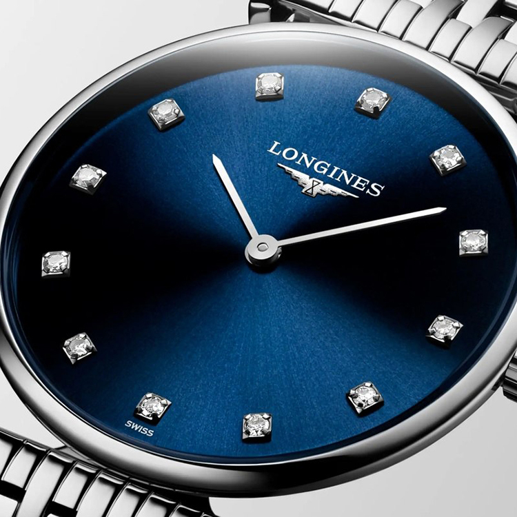 Корпус: Нержавеющая сталь, сапфировое стекло, 12 бриллиантов на циферблате. Размер 29 мм, водонепроницаемость 30 метров. Циферблат – синий.