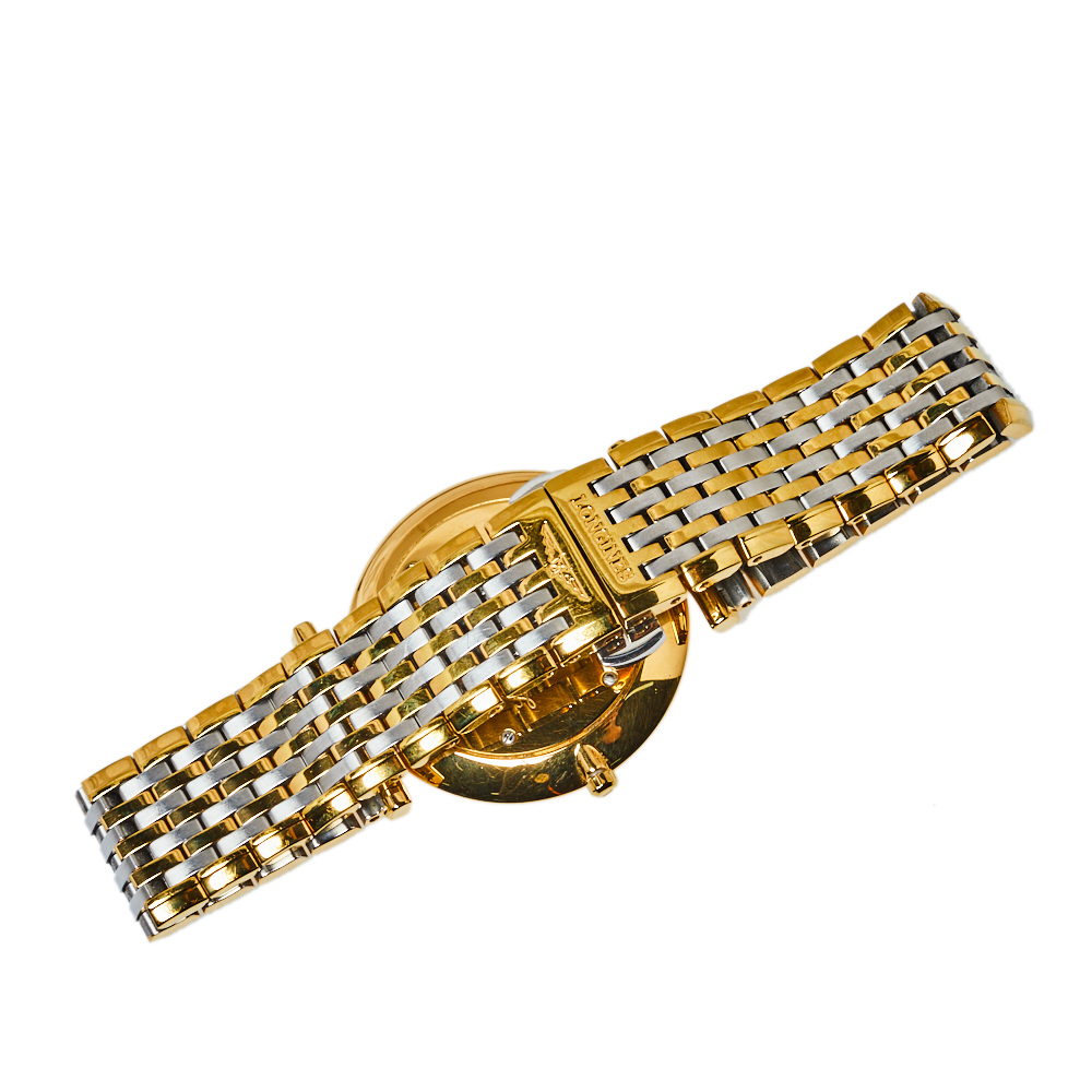 Корпус: Нержавеющая сталь+ PVD-покрытие из желтого золота, сапфировое стекло. Размер 33 мм, водонепроницаемость 30 метров. Циферблат – белый с римскими цифрами.