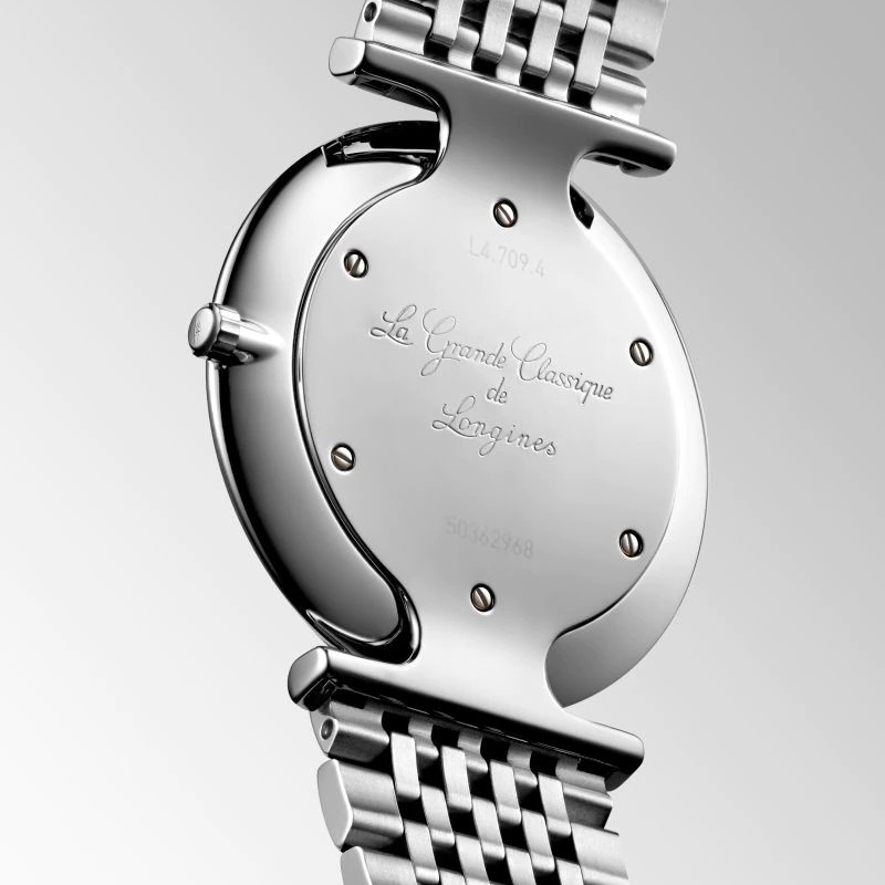 Корпус: Нержавеющая сталь, сапфировое стекло, 12 бриллиантов на циферблате. Размер 33 мм, водонепроницаемость 30 метров. Циферблат – черный.