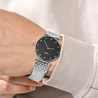 Корпус: Нержавеющая сталь, водонепроницаемость 30 метров, стекло сапфировое. Диаметр 37,0мм. Циферблат чёрный, украшен 12 бриллиантами.